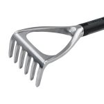 El rastrillo está fabricado en una sola pieza de aluminio, lo que le confiere ligereza y resistencia. Esta construcción monolítica asegura que no haya puntos débiles en la herramienta, garantizando una larga vida útil incluso bajo uso intensivo. El aluminio es conocido por su resistencia a la corrosión, lo que lo hace ideal para herramientas que estarán en contacto frecuente con tierra y humedad.
